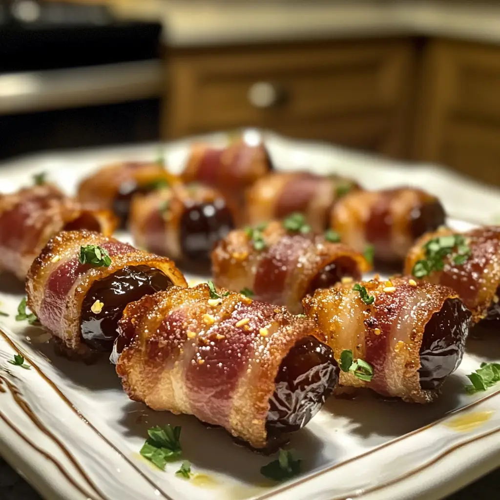 Bacon-Wrapped Dates are a delicious and easy-to-make appetizer that combines the sweetness of dates with the savory flavor of bacon, making them a perfect party snack.