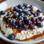 A delicious and nutritious breakfast option featuring baked blueberries and cottage cheese, perfect for starting your day.