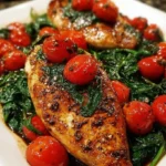 This dish isn’t just a meal; it’s an experience steeped in home-cooked comfort. You’ll find the crunch of perfectly cooked spinach, the juicy burst of ripe tomatoes, and the luscious, velvety sauce immersing the tender chicken in a savory embrace. Serve it on a busy weeknight, and watch the faces around the dinner table light up with joy. This recipe holds the power to transform an ordinary day into something extraordinary.