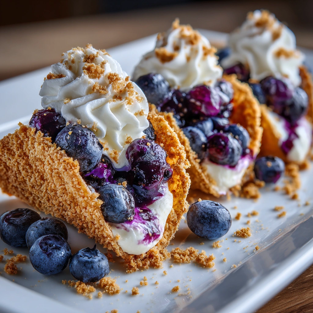 Blueberry Cheesecake Taco Shells are a delightful dessert that combines the flavors of creamy cheesecake and fresh blueberries in a fun taco shell format.