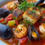 A fragrant French seafood stew bursting with fresh fish, mussels, and scallops.