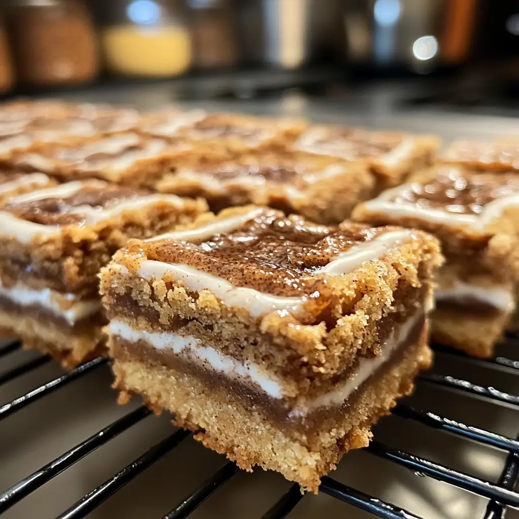 Once the bars have cooled for a few minutes, drizzle the icing over the top. You can get creative here! Use a spoon or a piping bag for a fun design. Let the icing set for a bit, then slice the bars and serve. Enjoy them warm or at room temperature—either way, they’re a treat!