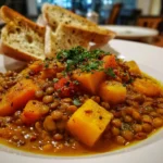 A warm and hearty stew made with butternut squash and lentils, perfect for a cozy meal.