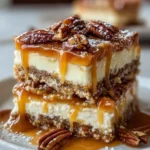 - Repeat the layers: Spread the remaining cream cheese mixture, drizzle with the leftover caramel sauce, and sprinkle the remaining pecans.