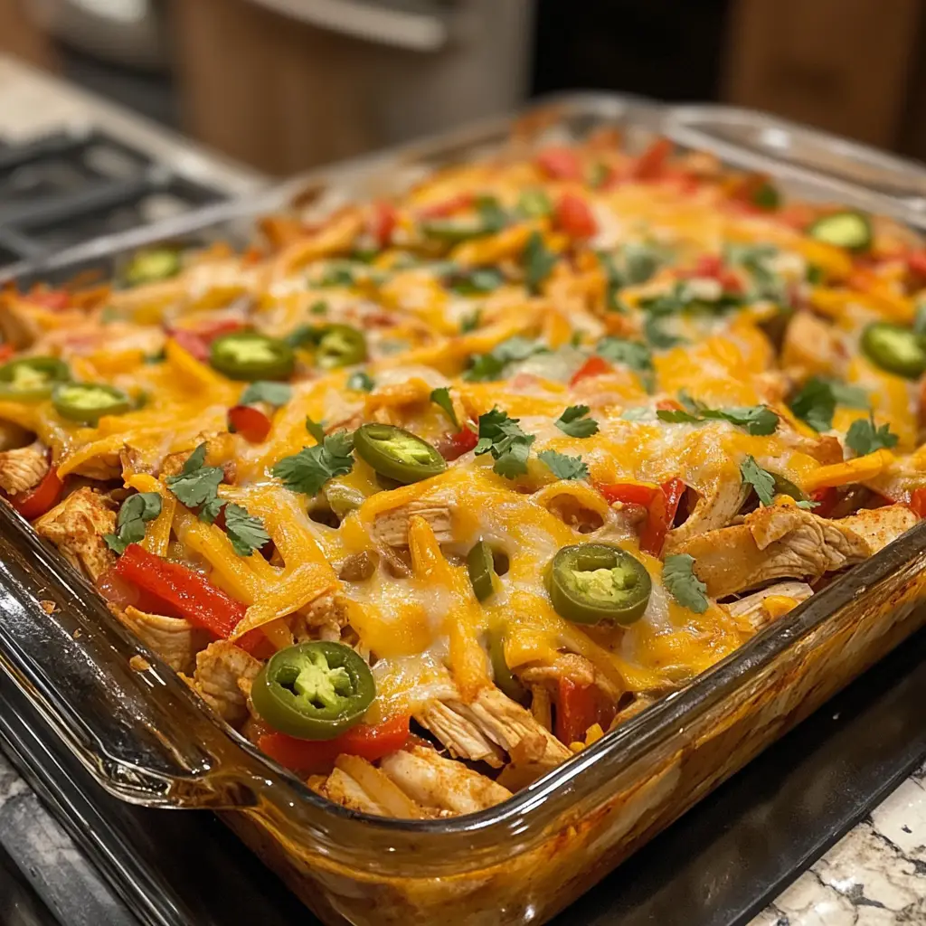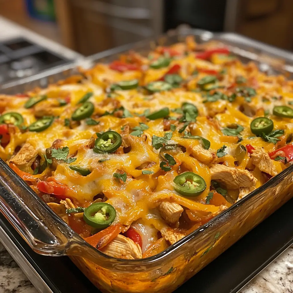 A simple and tasty Chicken Fajita Casserole that combines all the flavors of traditional fajitas in a convenient baked dish.
