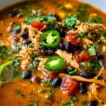 A comforting and hearty Chicken Poblano and Black Bean Soup, enriched with creamy broth, tender chicken, and zesty spices—perfect for cozy family gatherings.