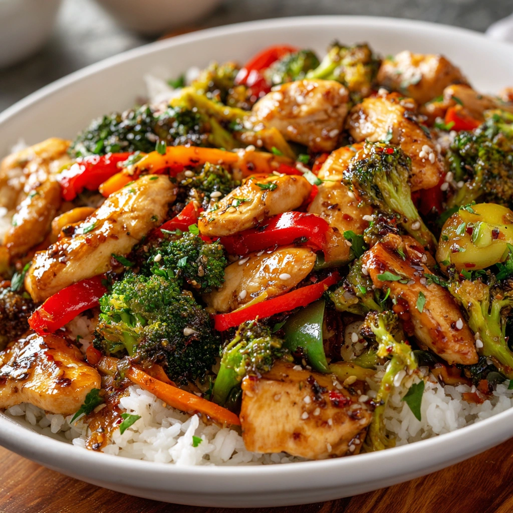 A quick and delicious Chicken & Veggie Stir-Fry Bowl that combines tender chicken with fresh vegetables for a healthy dinner option.
