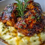 - Serve the chicken thighs on top of the mashed potatoes and drizzle with remaining glaze.