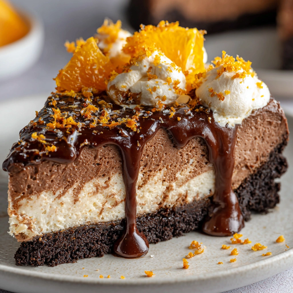 A rich and creamy chocolate orange cheesecake that combines the flavors of chocolate and citrus for a delightful dessert experience.