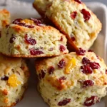 Deliciously flaky scones infused with tangy cranberries and refreshing orange zest, perfect for any occasion.