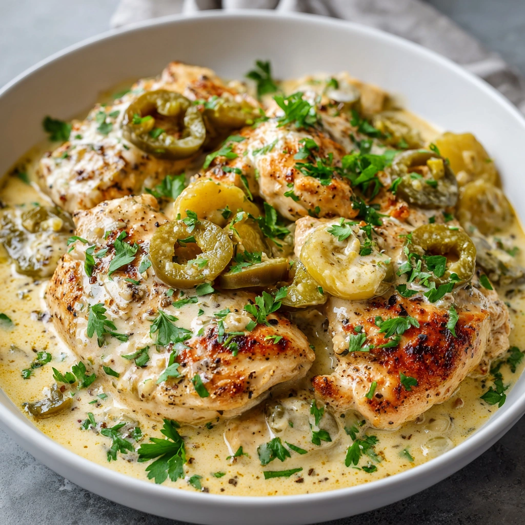 A quick and delicious creamy chicken dish featuring pepperoncini peppers, perfect for a weeknight dinner.