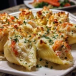 Creamy Seafood Stuffed Shells are a delicious and satisfying dinner option, filled with a rich seafood mixture and topped with a creamy sauce.