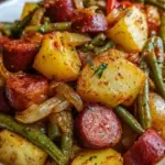 Crock Pot Swamp Potatoes are a comforting blend of tender potatoes, smoky sausage, and crisp green beans, all slow-cooked in a flavorful broth.