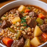 A heartwarming soup made with tender beef, nutty barley, and a medley of fresh vegetables, perfect for cold evenings.