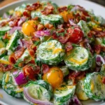 Imagine a hot summer day where the sun shines overhead and the air is filled with the tantalizing aroma of grilled burgers and barbecued ribs. Amidst this culinary bliss, a shadowy figure appears; it’s the Cucumber Ranch Crack Salad, ready to shine like a cool breeze on a sweltering afternoon. Vibrant green cucumbers glisten as they bask in the sauce’s creamy embrace, each bite bursting with freshness that tantalizes the palate with every crunch. Bright cherry tomatoes amplify the garden-fresh flavors, their sweetness a perfect counterpoint to the zesty tang of ranch dressing. Crumbled bacon adds a smoky allure, while shredded cheddar cheese mingles luxuriously, creating a decadently rewarding experience that begs for more.