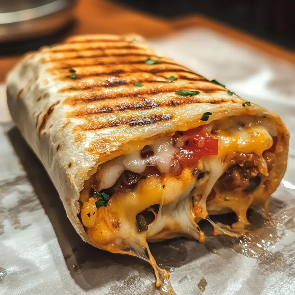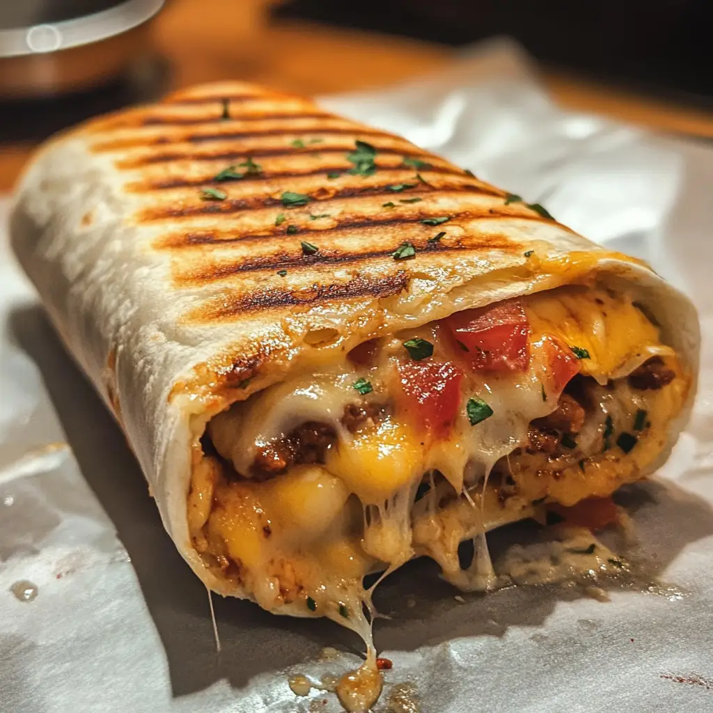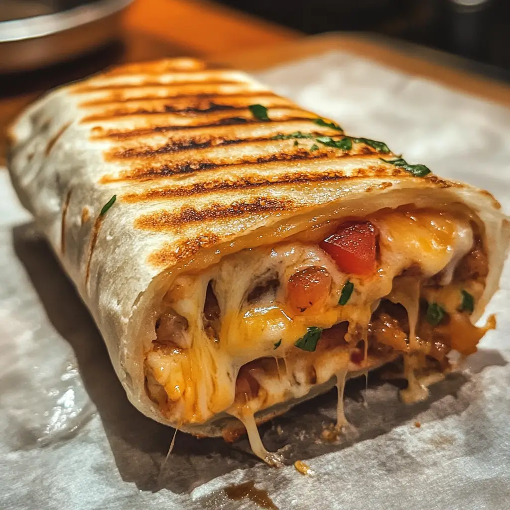A delicious and easy-to-make grilled cheese burrito that combines the classic flavors of a grilled cheese sandwich with the convenience of a burrito.