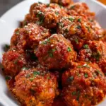 Delicious and comforting meatballs made with ground beef and pork, combined with rice and simmered in marinara sauce.
