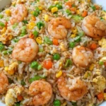 A colorful and flavorful shrimp fried rice dish featuring tender shrimp, mixed vegetables, and fluffy rice, perfect for any occasion.