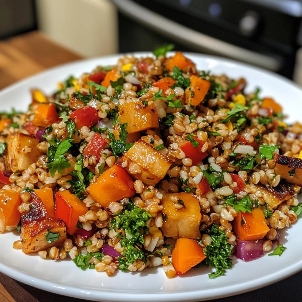 A nutritious and flavorful salad featuring barley, roasted vegetables, and pumpkin seeds, perfect for fall.