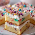 Frost the bars: Once the bars are cool, spread the frosting generously over the top. Don’t forget to add sprinkles!
