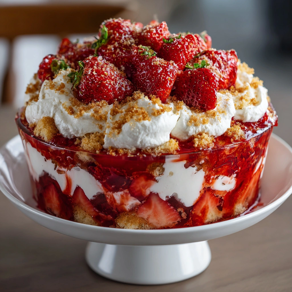 A delightful and festive dessert perfect for celebrating Galentine’s Day with friends, featuring layers of strawberries, shortcake, and whipped cream.