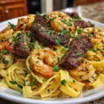 Cooking is more than just preparing a meal; it’s about creating memories and sharing joy with those we love. My Garlic Butter Steak & Shrimp Pasta is a perfect example of that. It’s a dish that brings everyone to the table, filling the air with mouthwatering aromas and laughter. Whether it’s a busy weeknight or a special occasion, this recipe is sure to impress. I hope you find as much joy in making it as I do. So grab your apron, gather your loved ones, and let’s make some delicious memories together!