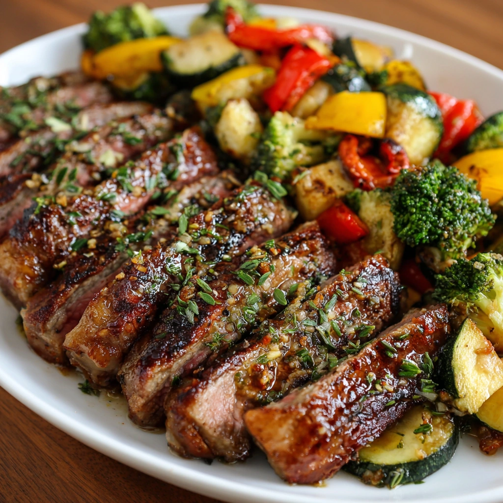 Finally, slice the rested steaks against the grain and serve them alongside the sautéed vegetables. For a lovely finishing touch, sprinkle some fresh parsley on top. This not only adds flavor but also makes your dish look restaurant-worthy!