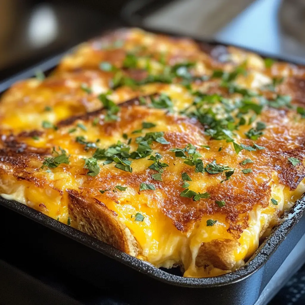 A delicious and easy-to-make breakfast casserole that combines the classic flavors of grilled cheese with eggs and bread, perfect for a hearty morning meal.
