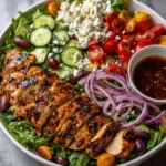 Finally, drizzle the balsamic vinaigrette over the salad. Toss everything gently to combine, ensuring each bite is packed with flavor. Serve immediately for the best experience. This Grilled Mediterranean Chicken Salad is not just a meal; it’s a celebration of fresh ingredients and vibrant tastes!