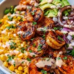 Creating a Grilled Shrimp Bowl with Avocado, Corn Salsa, and Creamy Garlic Sauce offers not only a feast for the senses but also a comforting reminder of the joys of home-cooked meals. This recipe is more than just a meal; it’s an invitation to gather around the table, to share laughter, and to savor simple pleasures. So, roll up your sleeves and dive into this culinary adventure. Each flavorful bite awaits, eager to delight your taste buds and brighten your day!