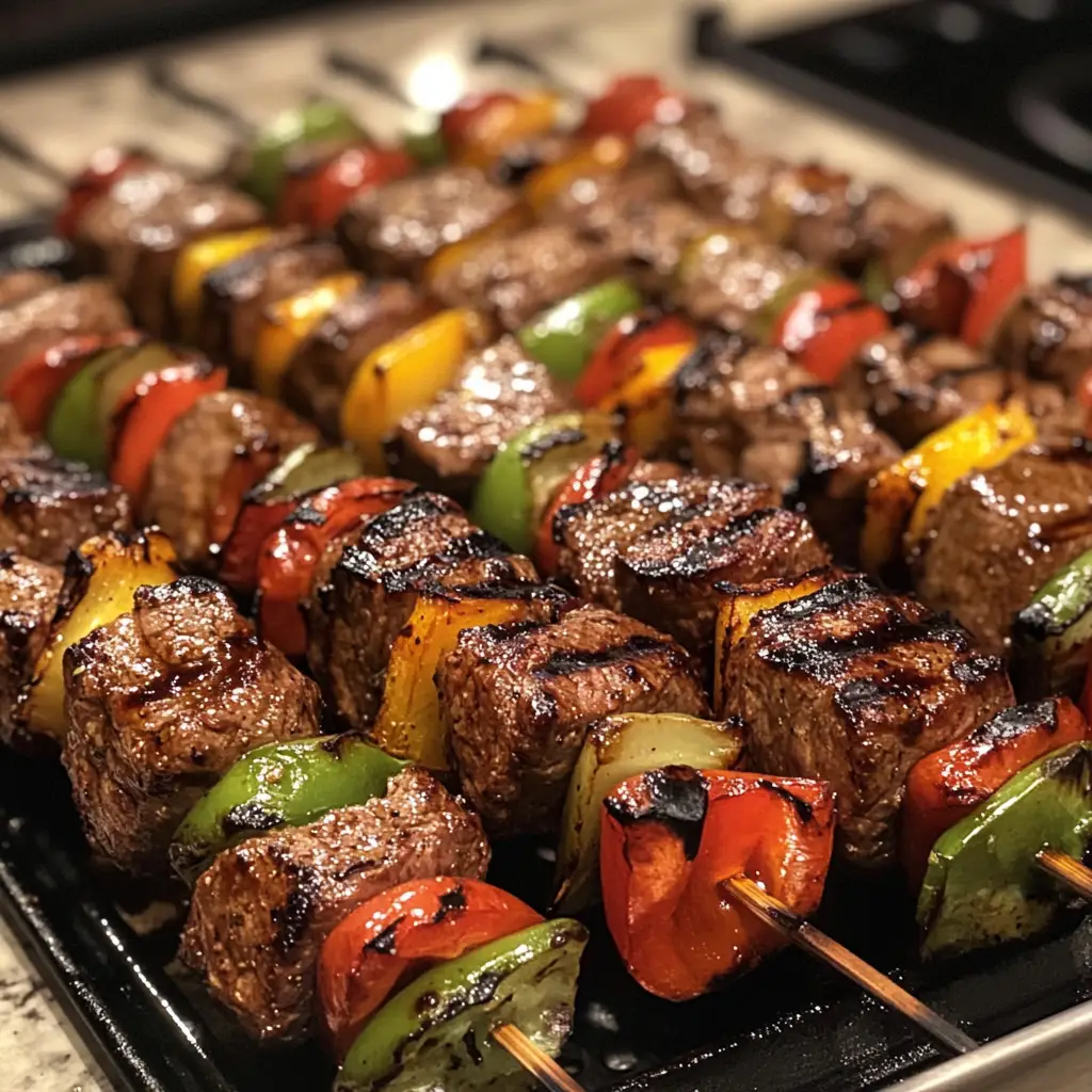- Vegetarian Option: Swap the steak and sausage for marinated tofu or tempeh. Add extra veggies like zucchini, mushrooms, and cherry tomatoes for a colorful feast.