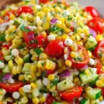 One of the best parts about this corn salad is its versatility. You can serve it at picnics, potlucks, or as a colorful side at holiday gatherings. The combination of sweet, fresh vegetables with creamy mozzarella makes a delightful contrast, appealing to both children and adults alike. Plus, it’s incredibly easy to make, requiring no advanced cooking skills. You simply toss fresh ingredients together, creating an effortless dish that inspires smiles with every serving.