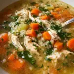 A nourishing, homemade chicken soup filled with lean protein and vibrant vegetables, perfect for warming your soul.