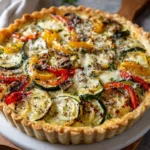 A festive and colorful tart filled with seasonal vegetables, perfect for holiday gatherings.