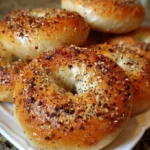 Add Toppings and Bake: After boiling, place the bagels on the prepared baking sheet, sprinkle with your favorite toppings, and bake for 20-25 minutes or until golden brown, filling your kitchen with a heavenly aroma.