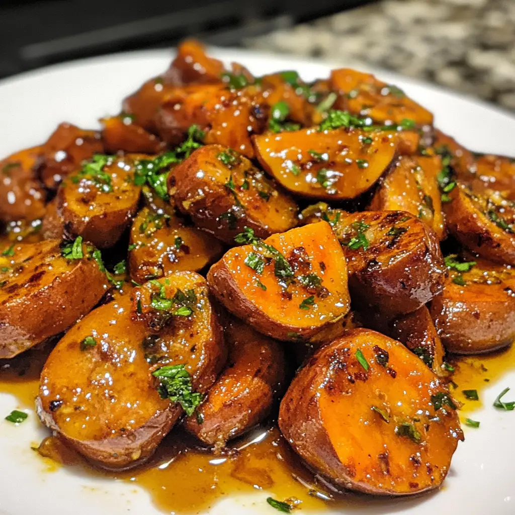 A deliciously unique dish featuring honey garlic sausage and sweet potatoes, perfect for a comforting meal.