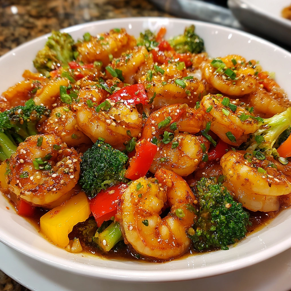 A quick and flavorful shrimp stir-fry dish featuring a delicious honey garlic sauce.
