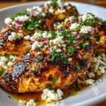 - Sprinkle the crumbled feta cheese on top of the chicken.