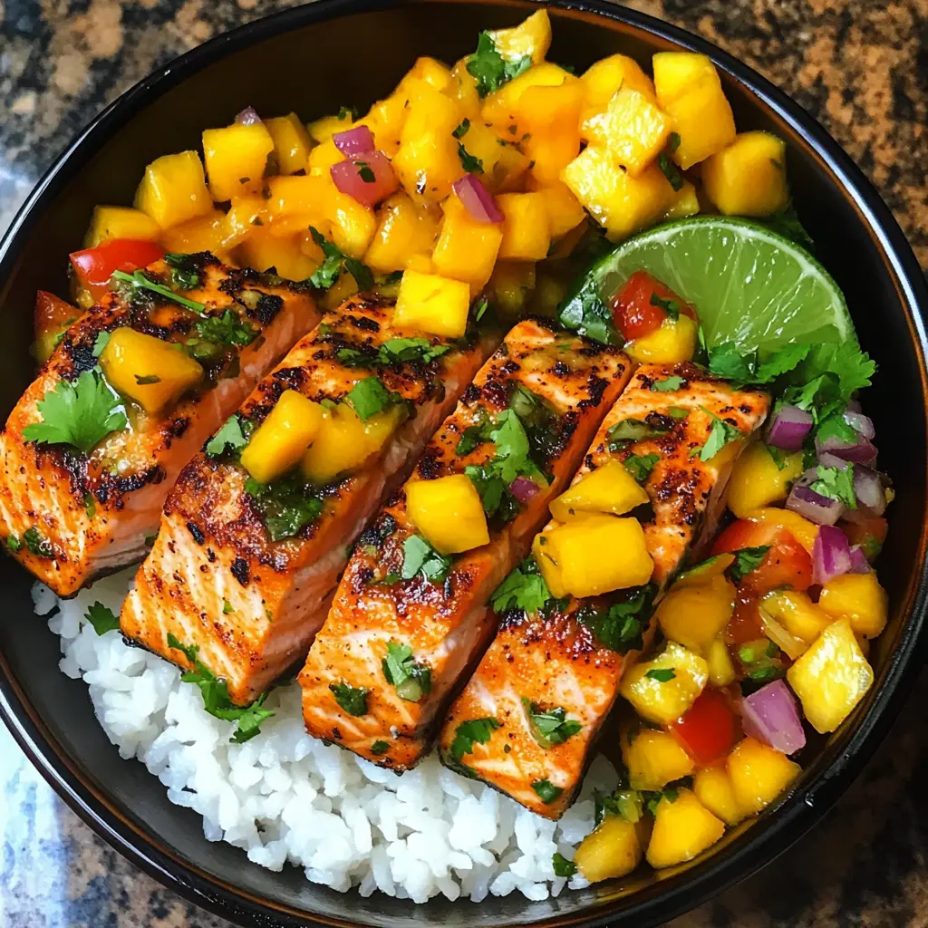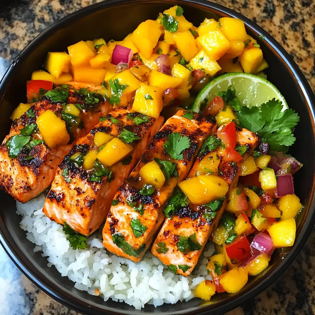Mango Salsa Salmon Bowls are a refreshing and vibrant dish perfect for summer, combining grilled salmon with a zesty mango salsa over a bed of rice.