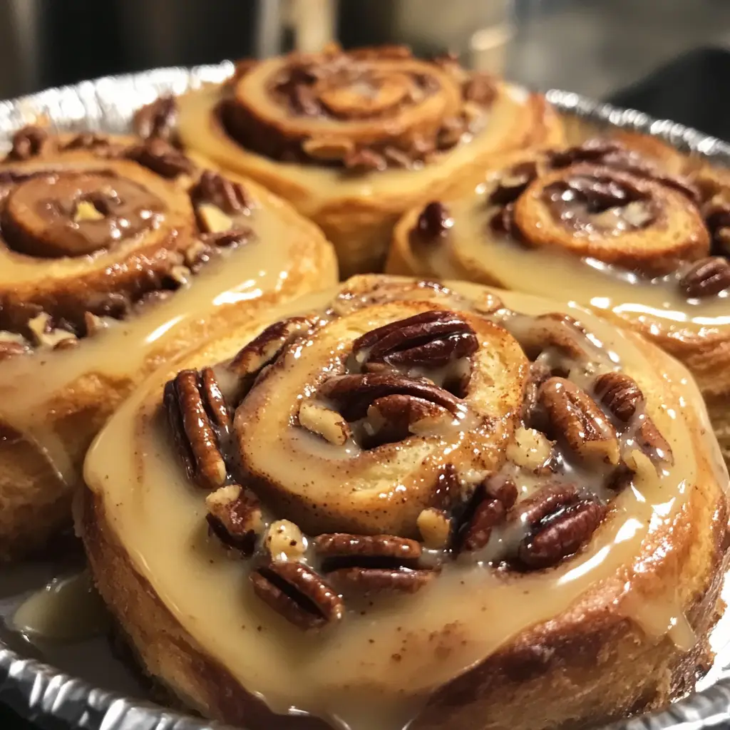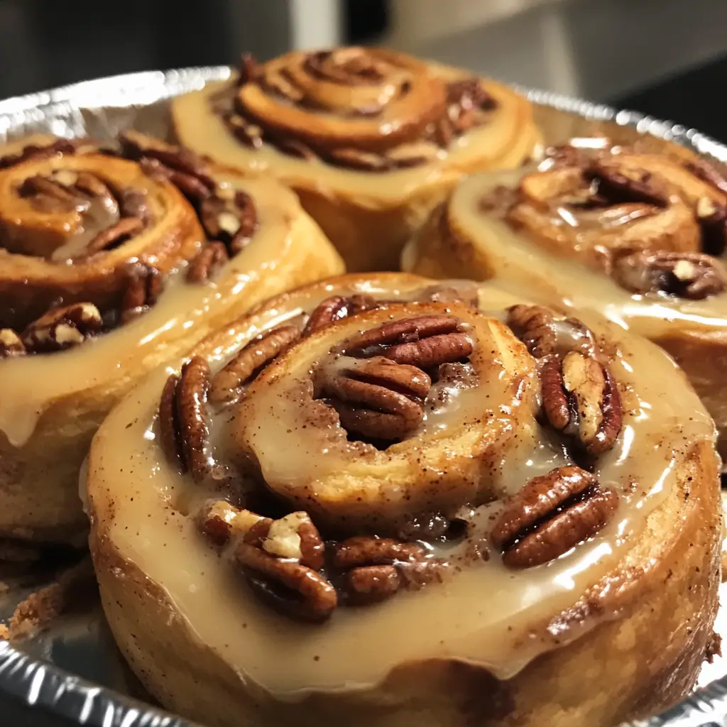Deliciously sweet and sticky maple pecan cinnamon rolls, perfect for a delightful morning treat.