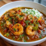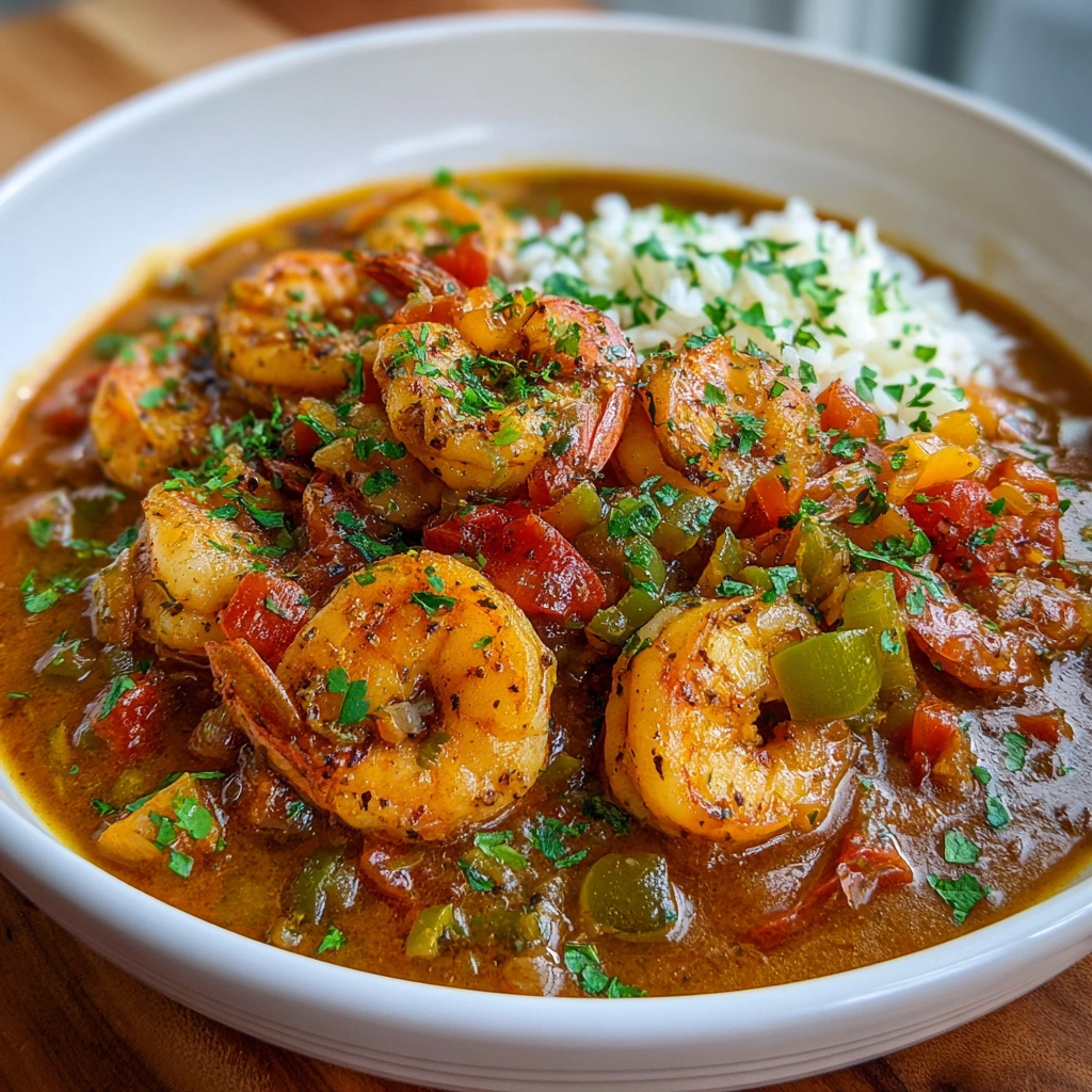 A flavorful and hearty dish featuring shrimp cooked in a rich, spicy sauce, perfect for celebrating Mardi Gras.