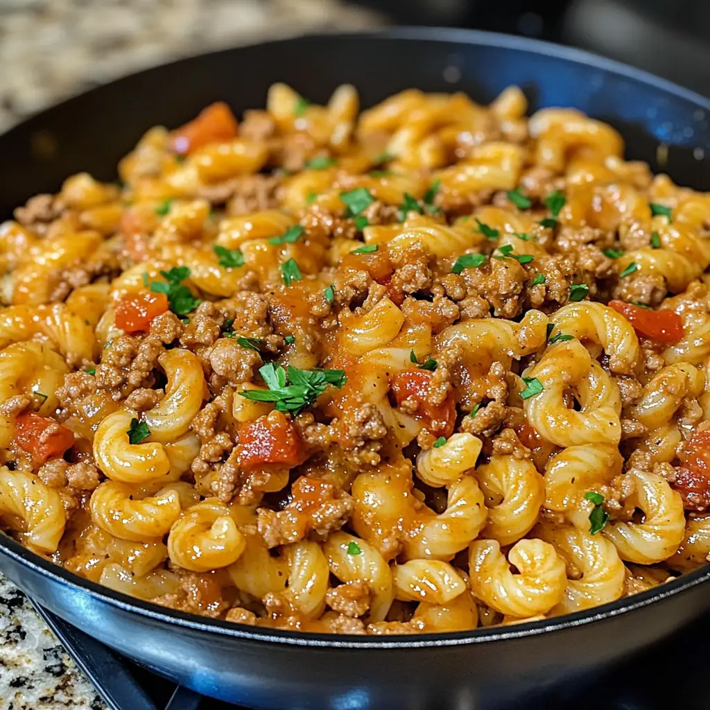 A quick and easy one pot meal featuring ground turkey and pasta, perfect for busy weeknights.