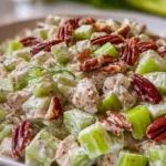A refreshing and crunchy salad featuring crisp celery and rich toasted pecans, dressed in a creamy mayonnaise with lemon juice.