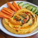 A delicious and healthy pumpkin hummus recipe served with fresh veggies, perfect for snacking.