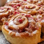 Delightful Rhubarb Cinnamon Rolls with a perfect balance of tartness and sweetness, offering a warm, gooey experience for breakfast or brunch.