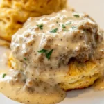 A comforting Southern-style sausage gravy served over flaky biscuits, perfect for breakfast or any meal.