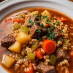 A heartwarming and hearty slow cooker soup featuring tender beef, nutty barley, and fresh vegetables simmered to perfection.