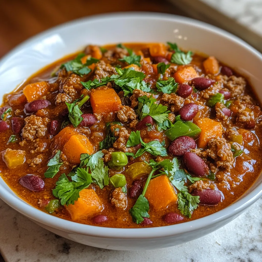 A warm and hearty slow-cooker pumpkin chili perfect for fall, combining the flavors of pumpkin, beans, and spices for a comforting meal.