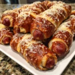 Delicious soft baked pretzel dogs filled with gooey cheese, perfect for a snack or party treat.
