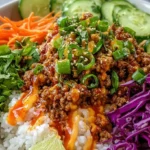 Spicy Bang Bang Turkey Bowls offer an unparalleled combination of robust flavors and vibrant textures that make every bite a delight. The ground turkey provides a light yet satisfying protein choice, offering a healthier alternative while still delivering on taste. With the blend of fresh vegetables—shredded carrots, crunchy cucumbers, and colorful purple cabbage—each bowl bursts with nutrition and brightness, inviting you to savor the freshness of every ingredient.